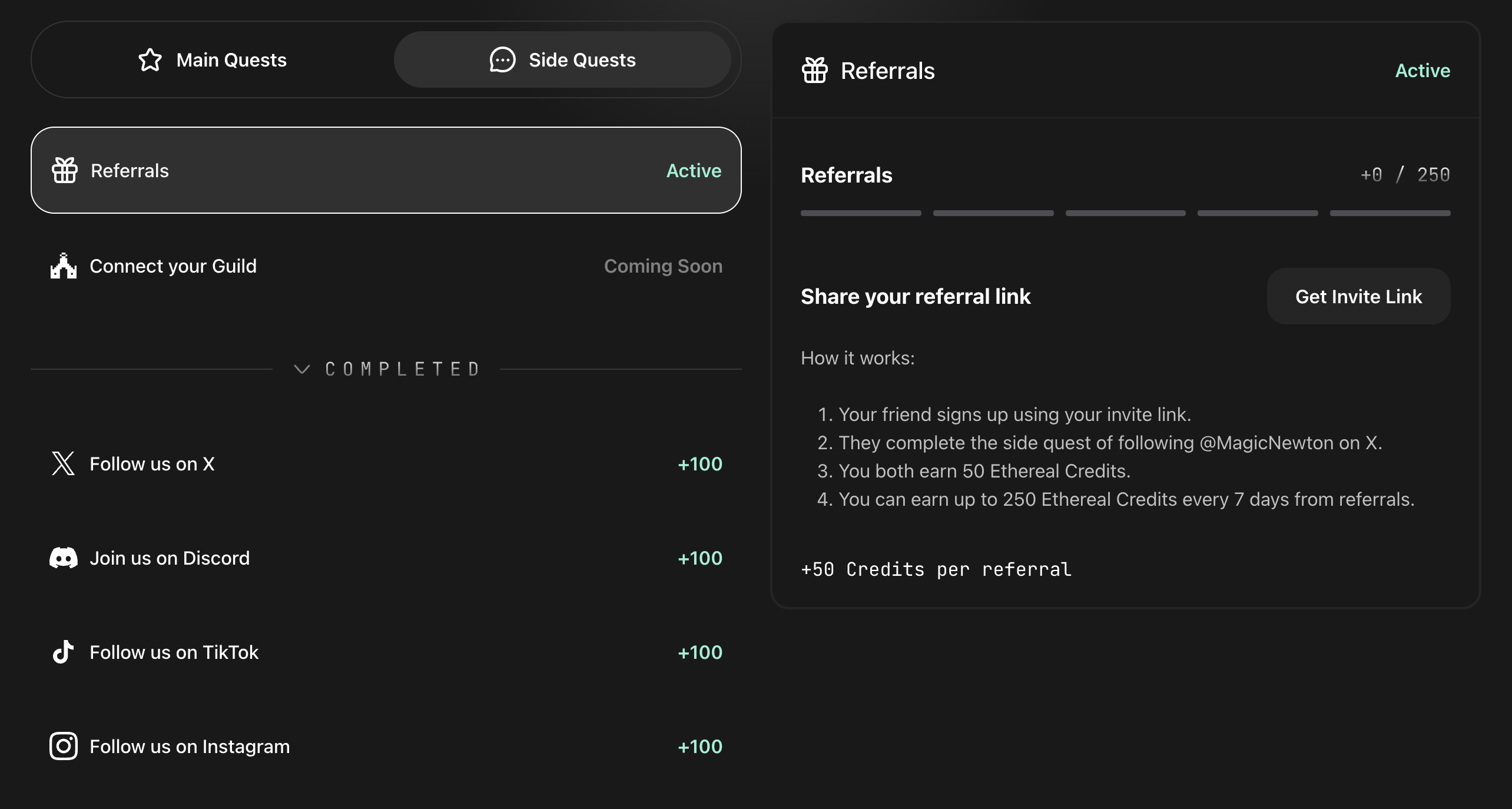 For the side quests, we just need to complete some social tasks such as following Magic Newton on X, joining the Discord and more.