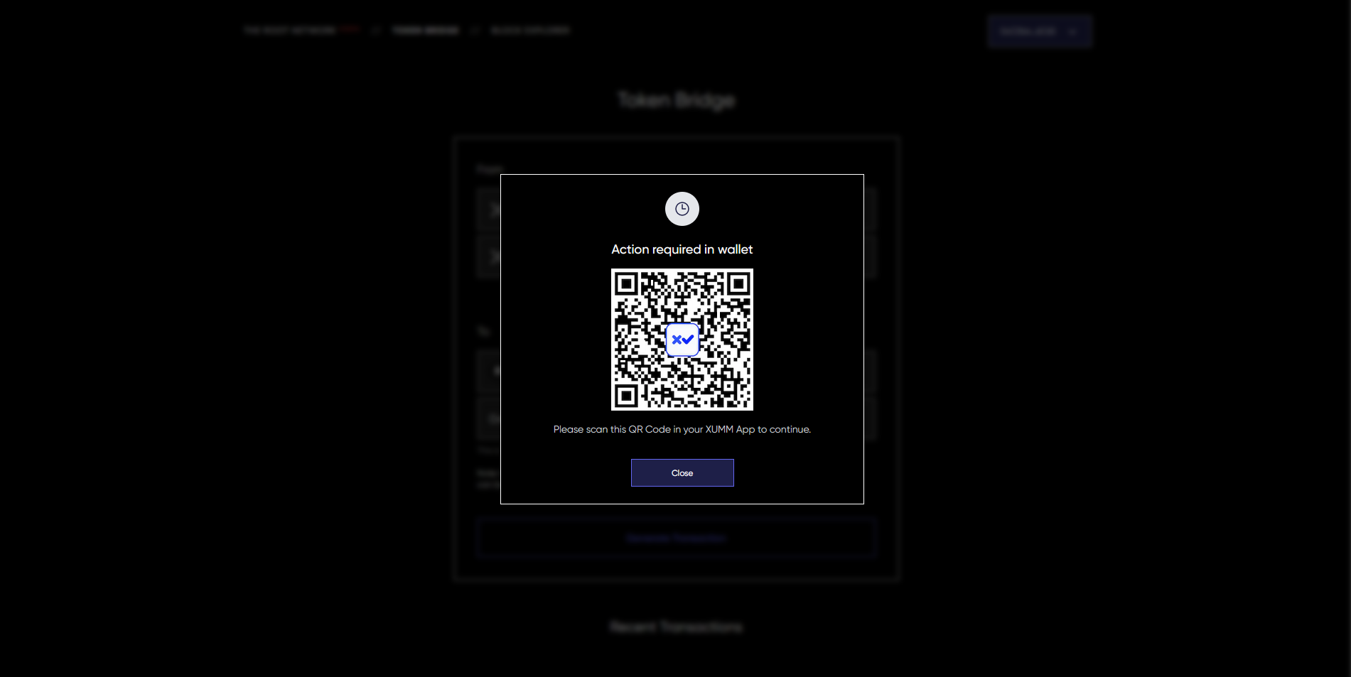 Finally we need to press "Generate Transaction", this will bring up a XUMM QR Code.