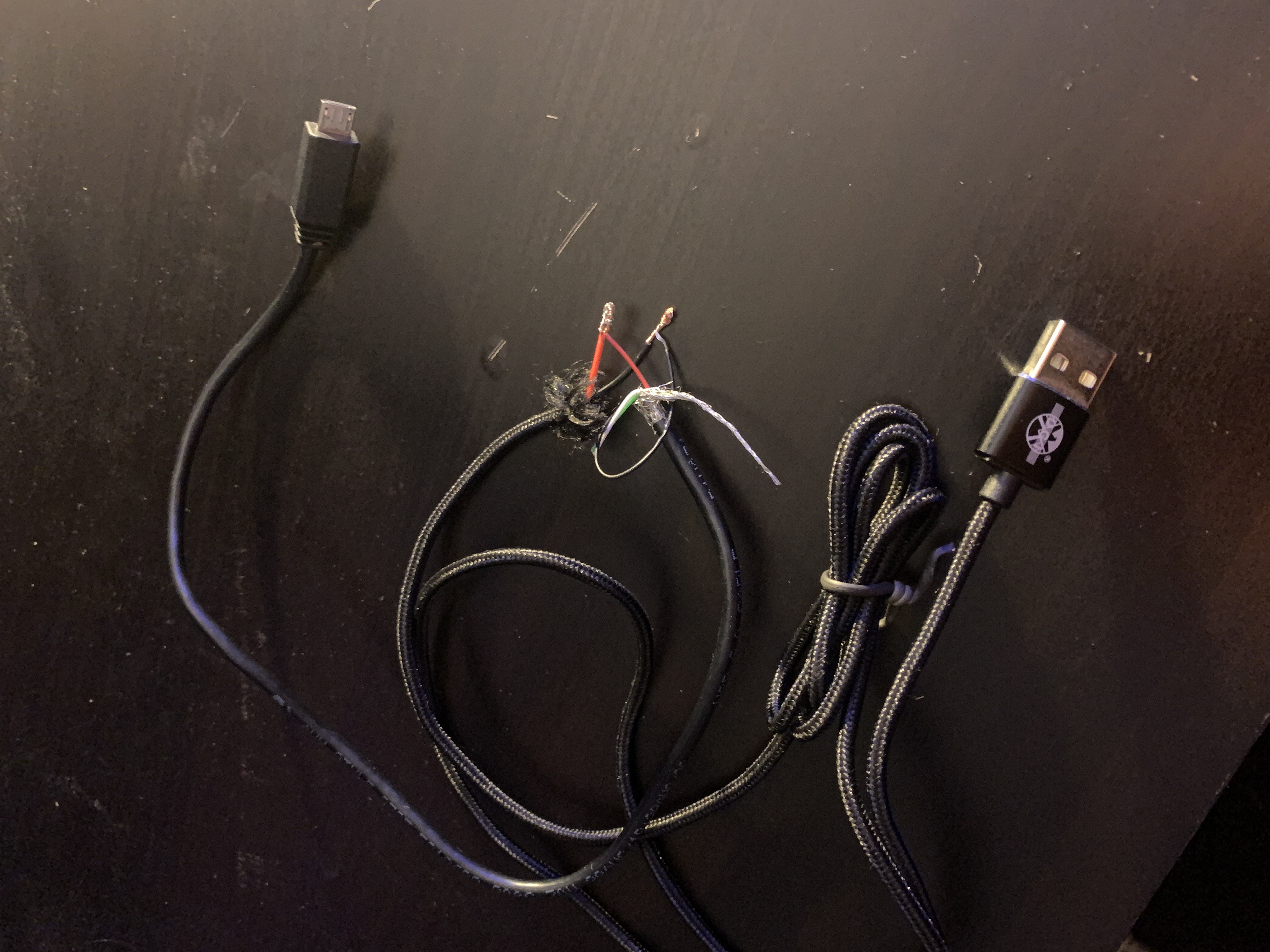 First we're going to need our micro USB cable. Make sure this is a spare one, and not one you would normally use to charge a device as we're going to be cutting this cable in half.