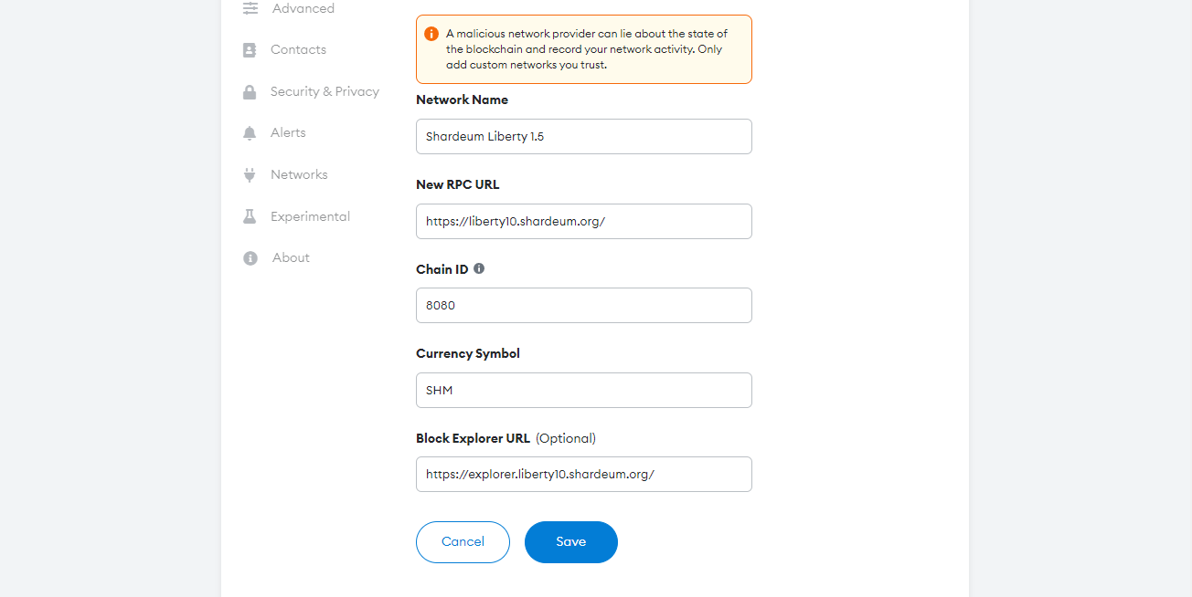 Now we need to fill in the details to add the Shardeum Network to MetaMask, you can find them here or alternatively you can copy the details from the image below.
