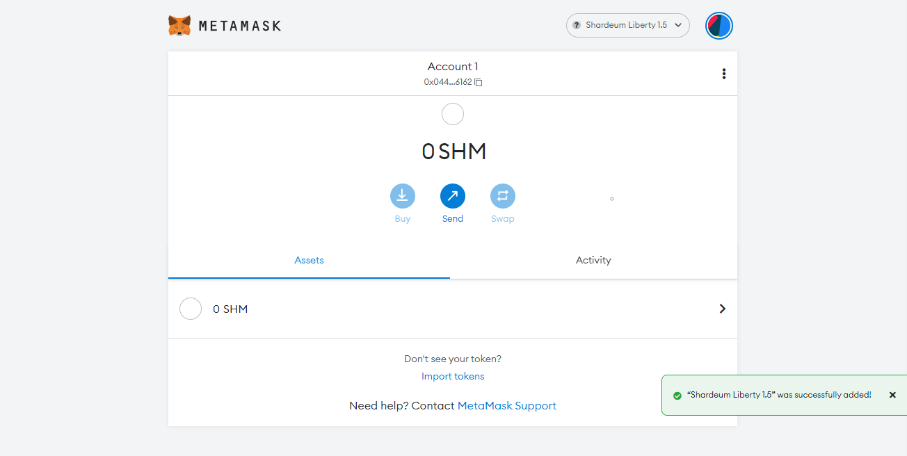 You should see a pop-up to let you know it was successful, go back to MetaMask and you should now see "100 SHM" in your wallet!