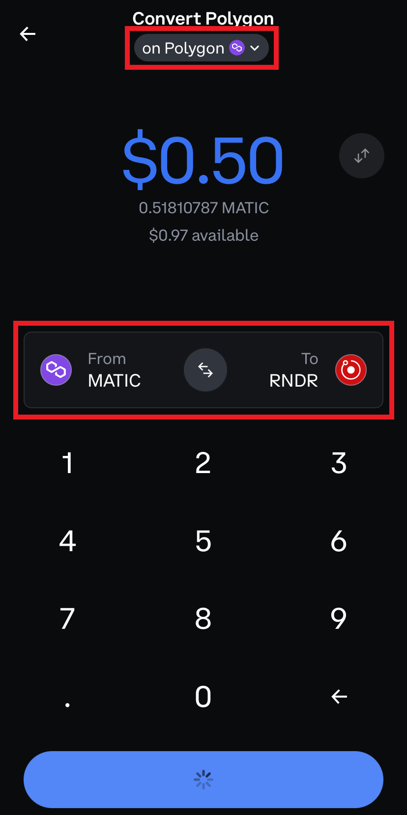 Then set the pair from Polygon (MATIC) to Render Token (RNDR)