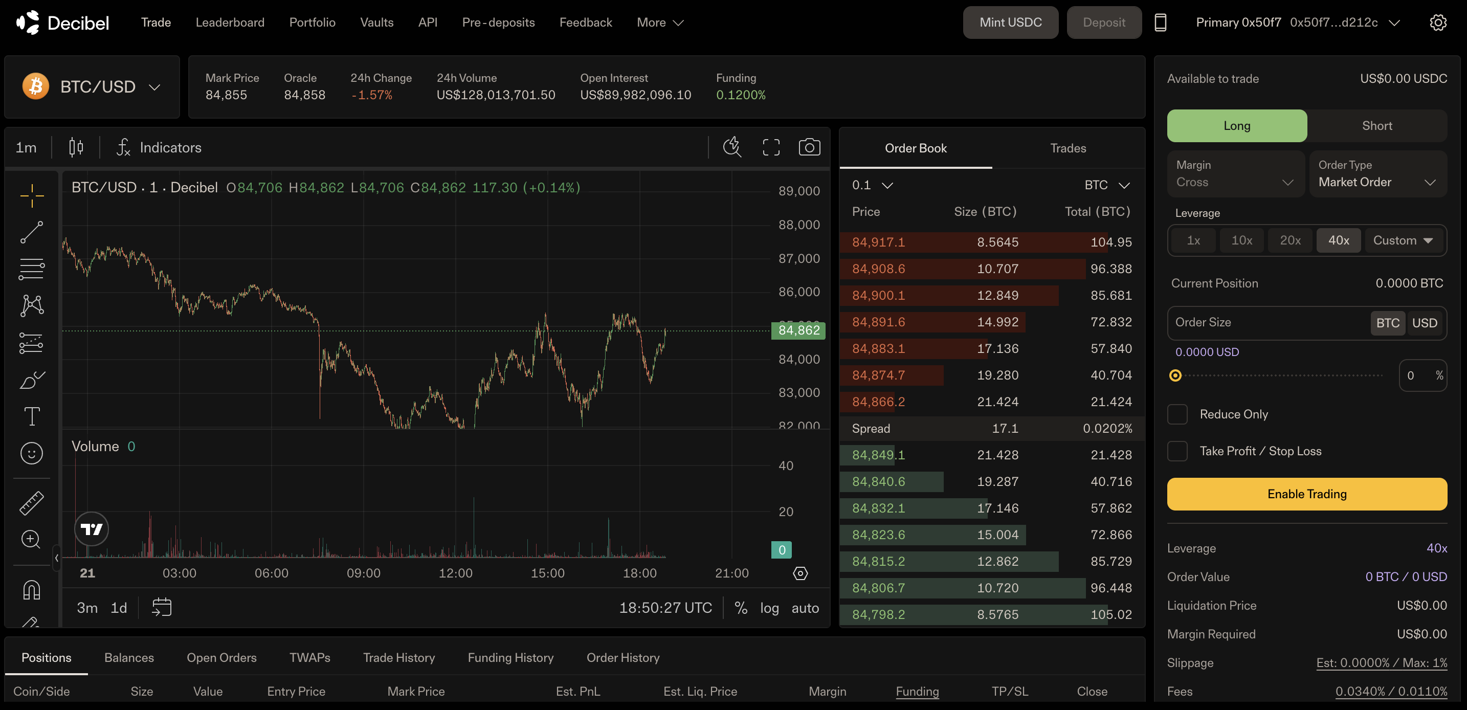 Decibel is a high-performance, fully on-chain trading engine built on Aptos.