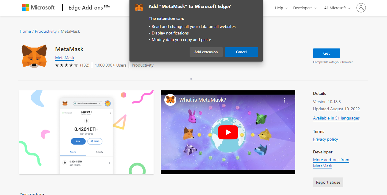Select Get or Install depending on which browser you use, then a pop-up should appear.