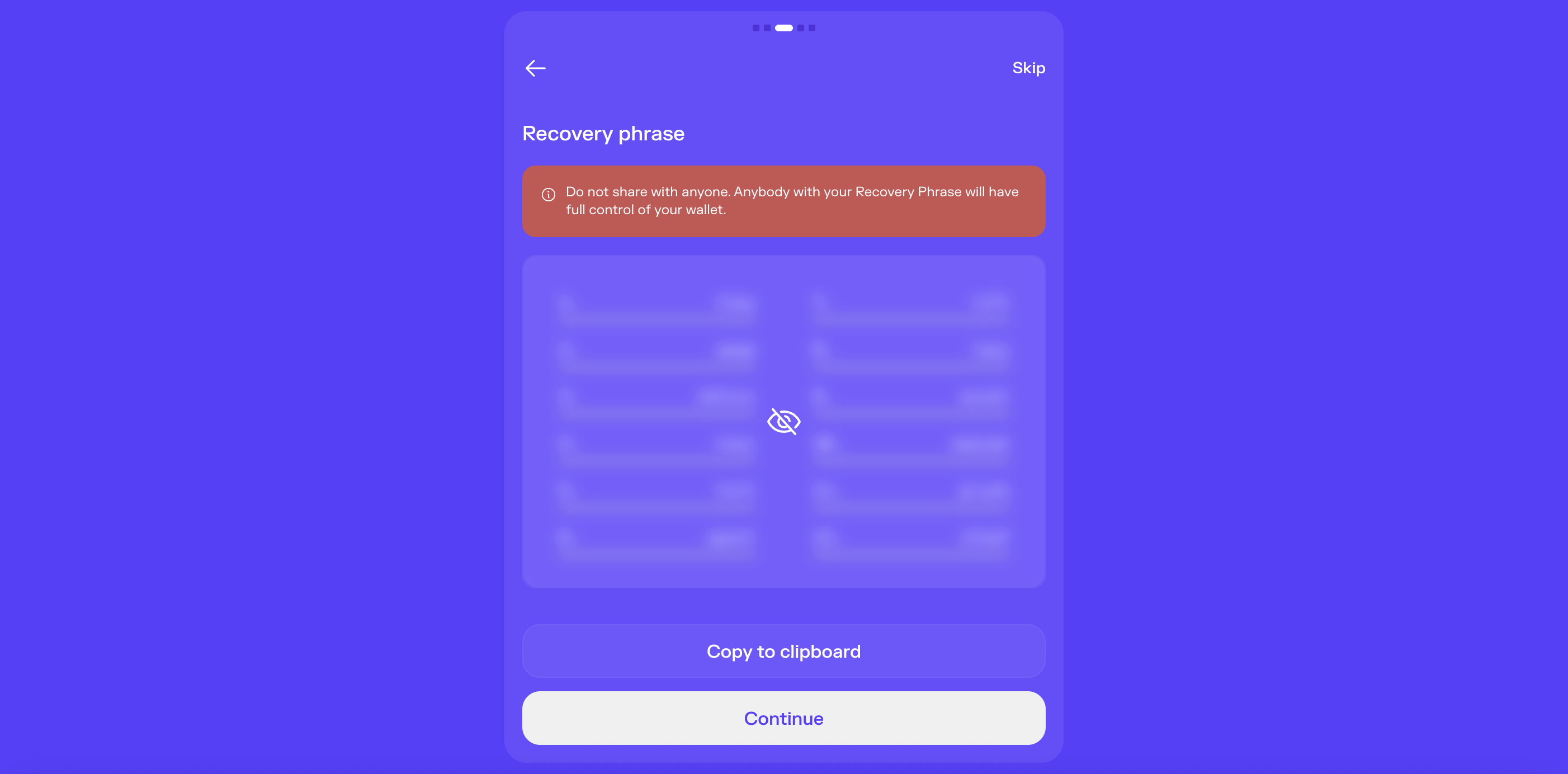 It will then provide your Recovery Phrase (Seed Phrase). This is the secret words used to access your funds, so do not share this with anyone.