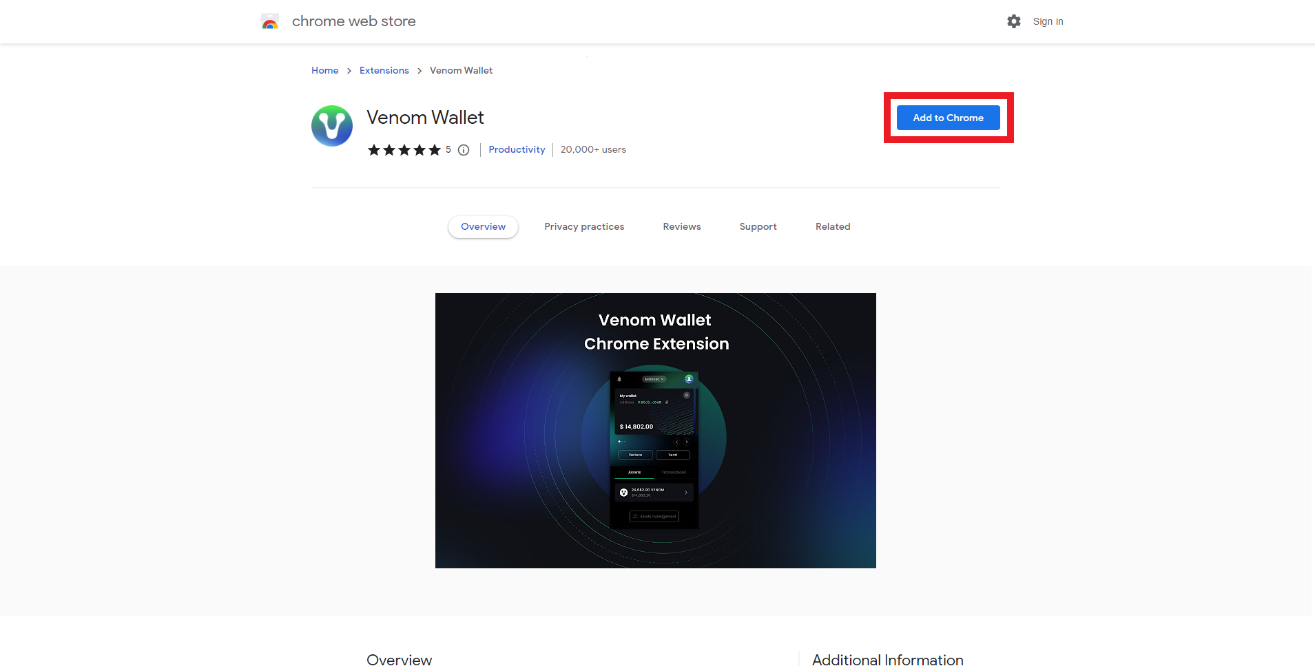 First, go to chrome.google.com/webstore & select "Add to Chrome".