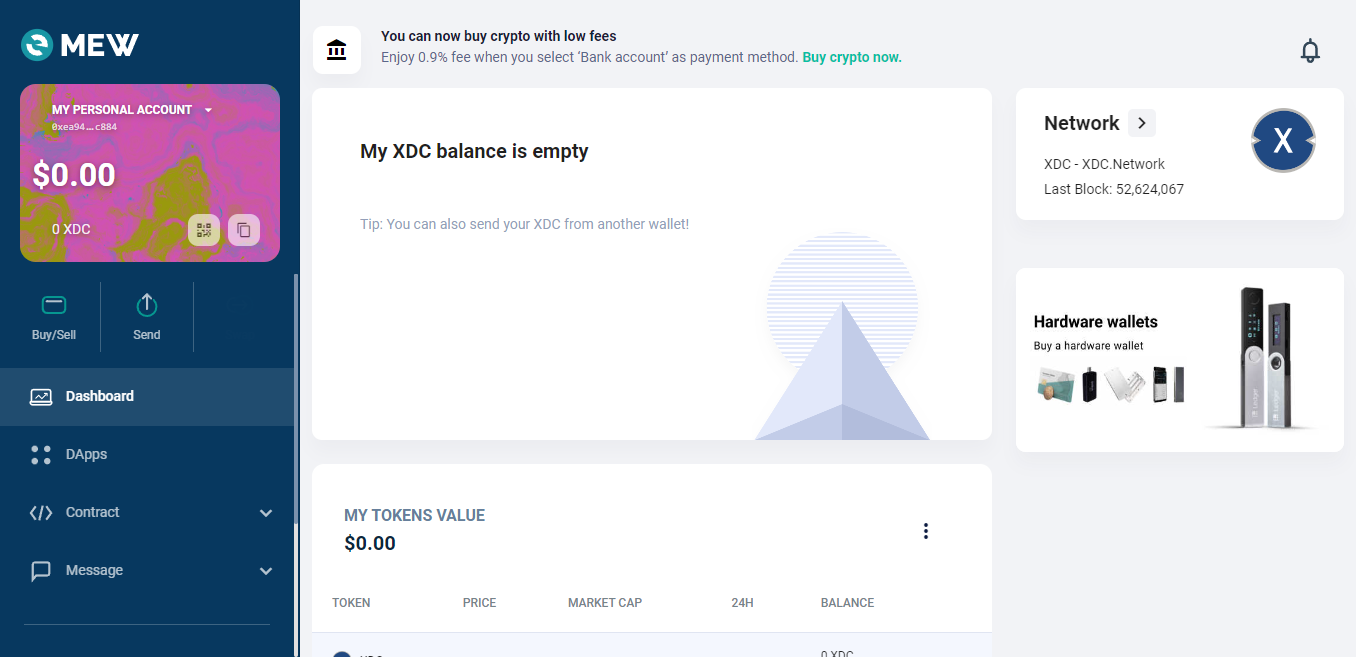 In this guide I will show you how to use XDC (XinFin Network) with Ledger Nano using MEW.