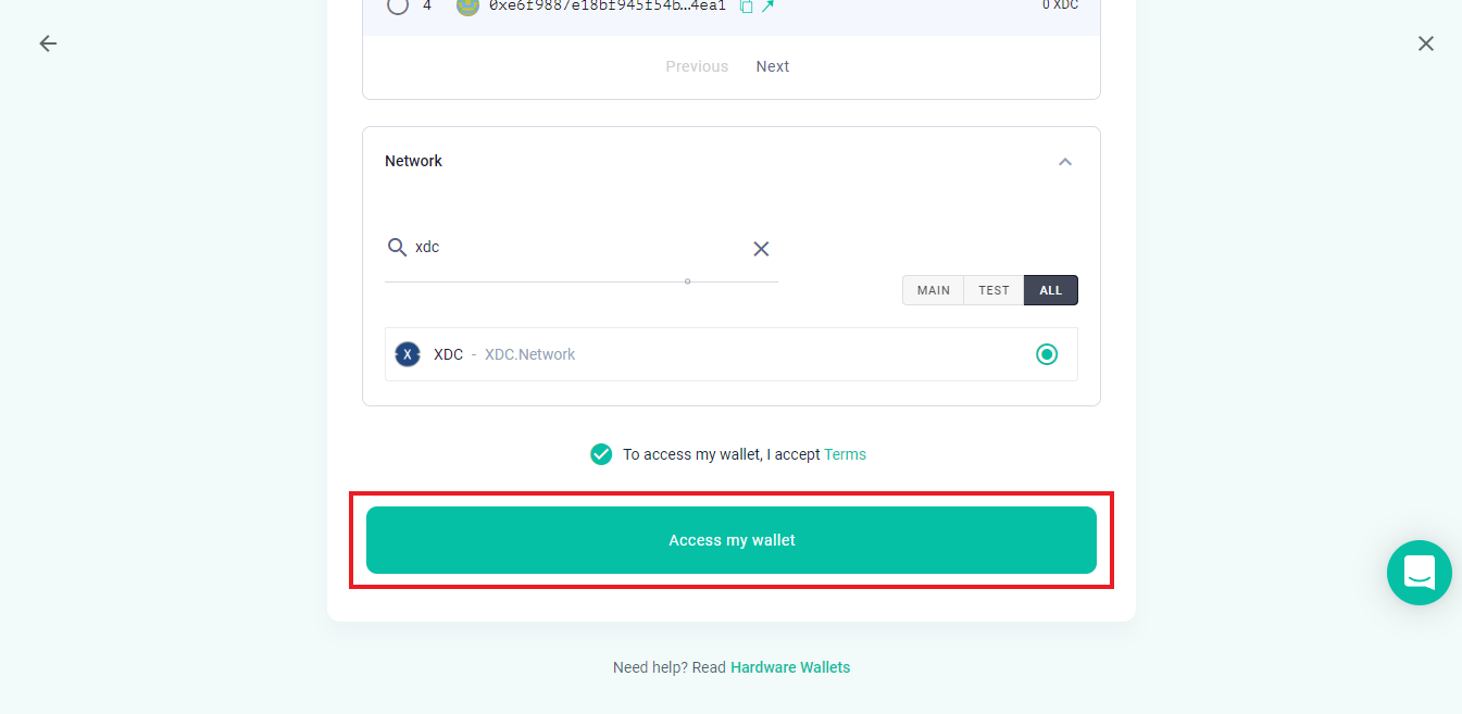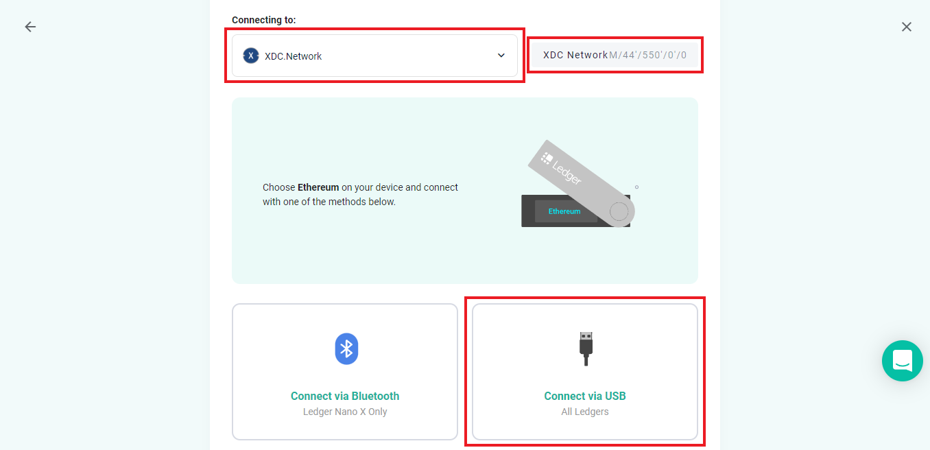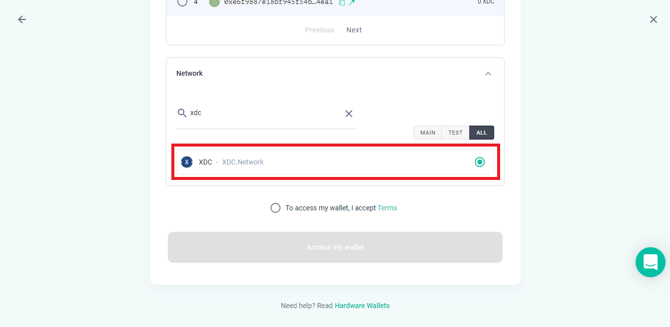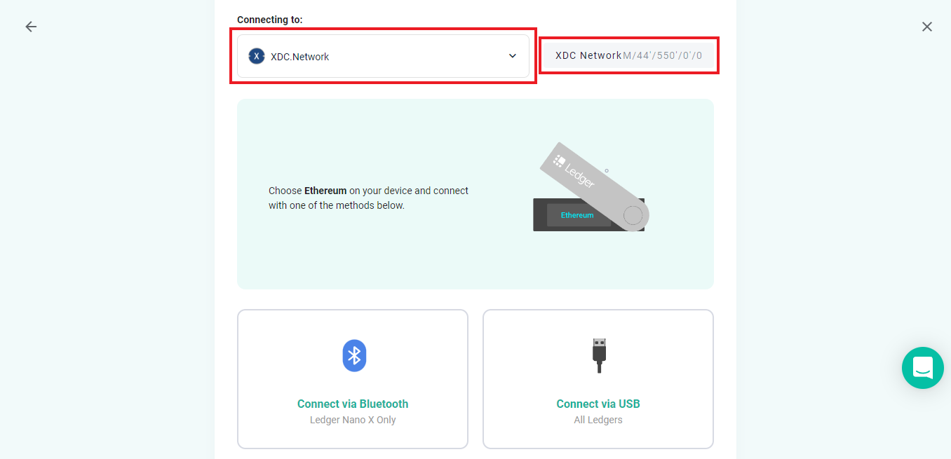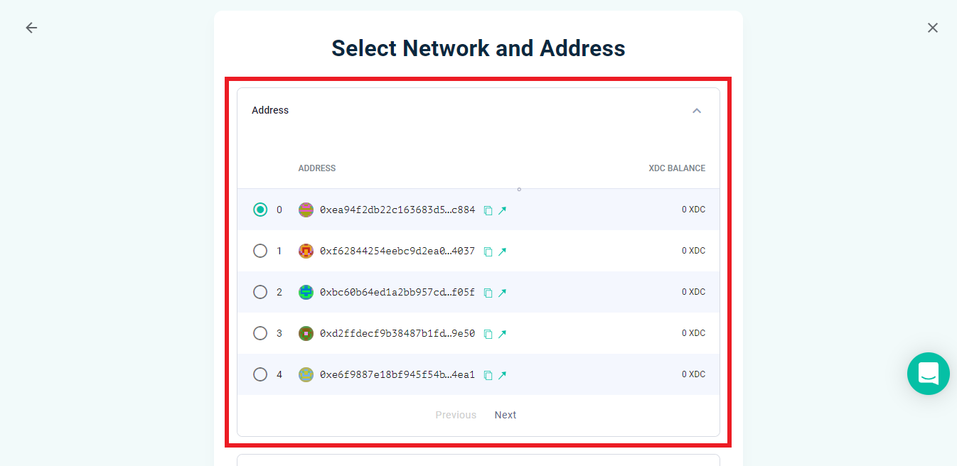 Click the second dropdown & select "XDC Network M/44'/550'/0'/0".