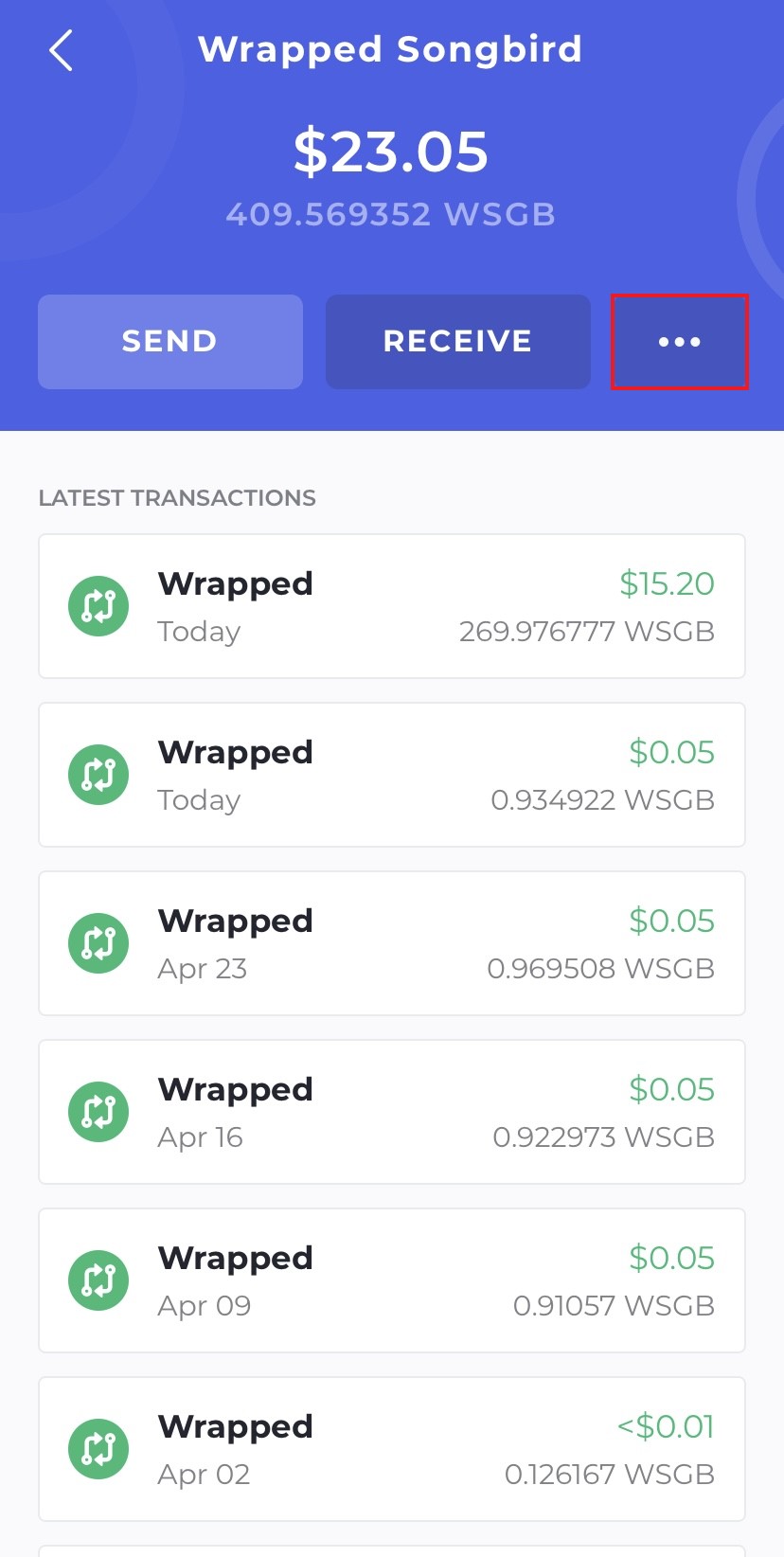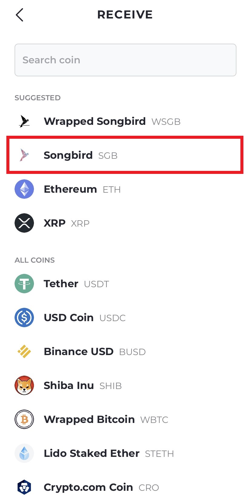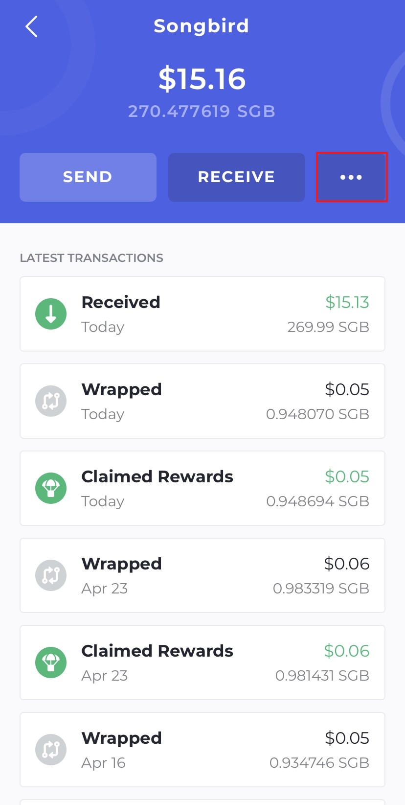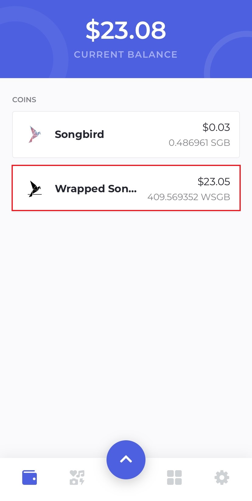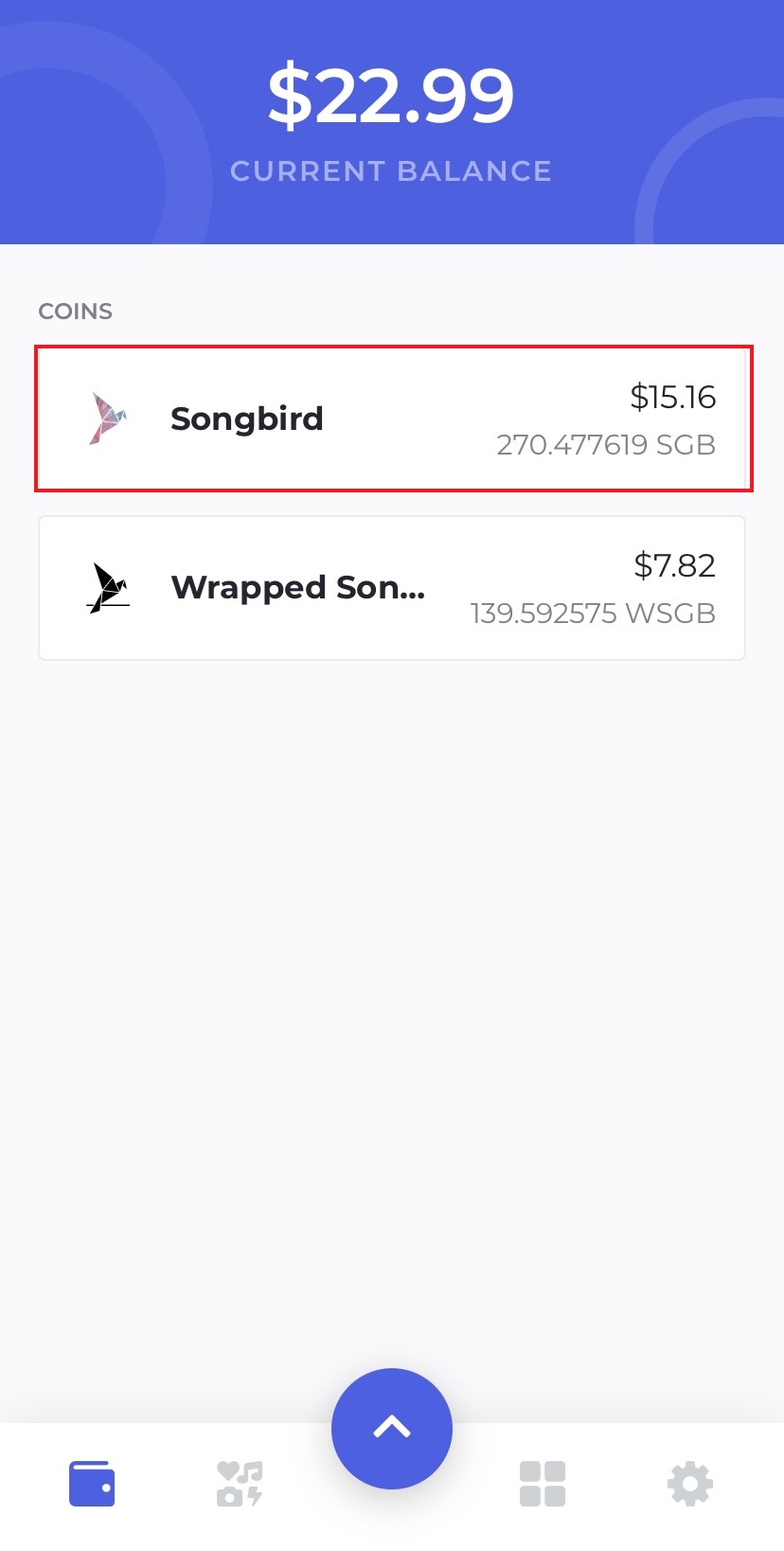 Now we have our SGB tokens in our wallet, go back to the homescreen and select your Songbird tokens.