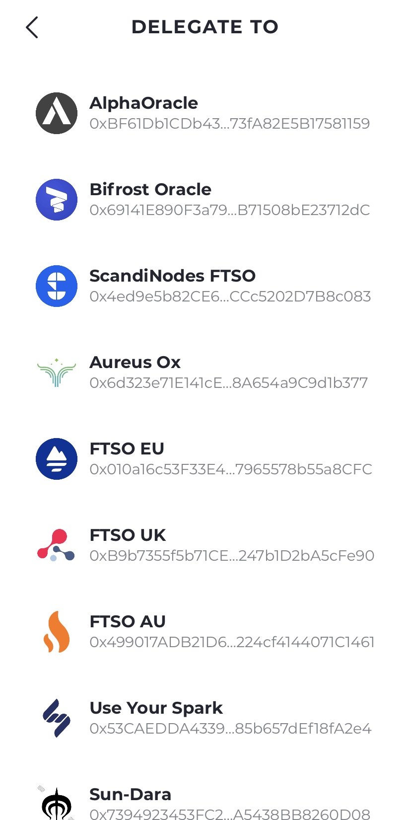 Now we need to choose a provider, press "Add delegation" and choose one, personally, I use "Alpha Oracle" but it's completely up to you, some have higher reward rates than others.