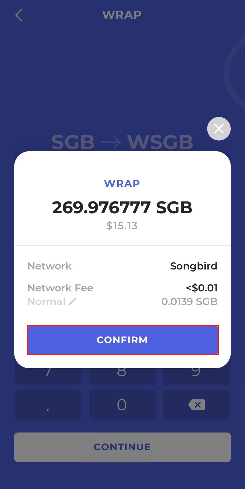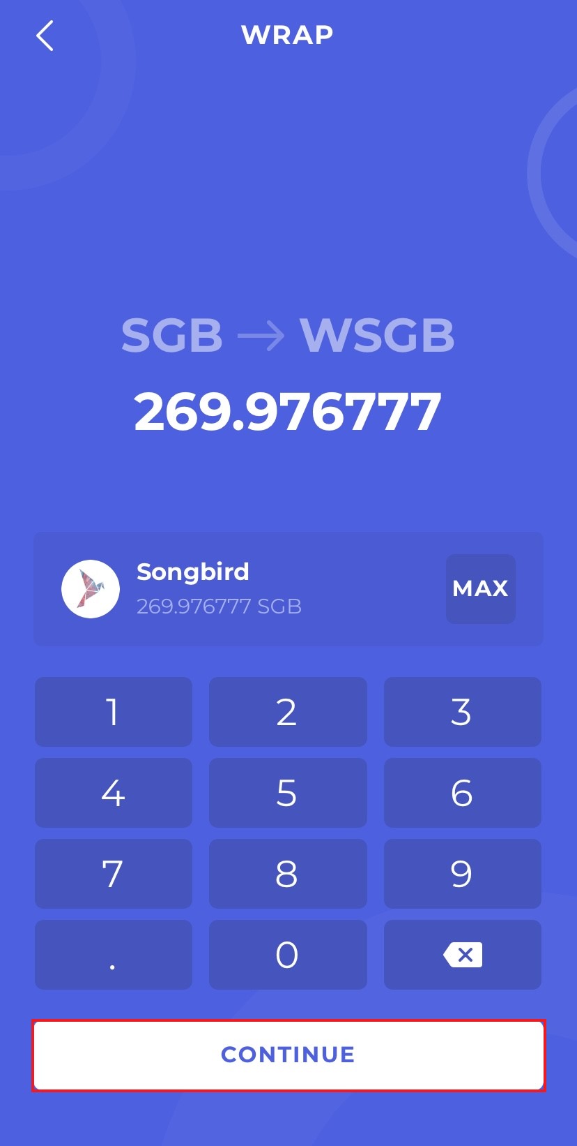 Now select how many SGB tokens you want to wrap and press "Continue".